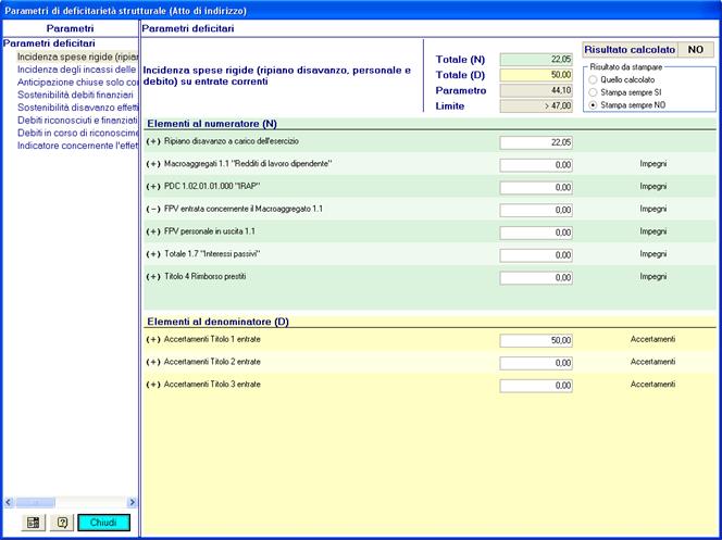 Nel riquadro “Risultato Calcolato” si segnala se il Parametro soddisfa o meno il limite di soglia.