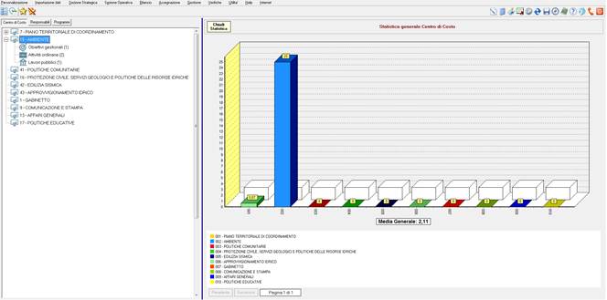 Utilizzando il bottone “Statistica generale” si accede al grafico che mostra l’avanzamento del centro di costo rapportato agli altri centri di costo. Il bottone “Chiudi Statistica” riporta alla visualizzazione precedente. Questa modalità è disponibile per ogni gruppo.