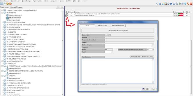 Consente di visualizzare la percentuale di impiego nell’ambito di Obiettivi, Attività o Lavori Pubblici assegnate ai Centri di Costo. La mappa consente di visualizzare i dati tramite opportuni filtri e ordinamenti.