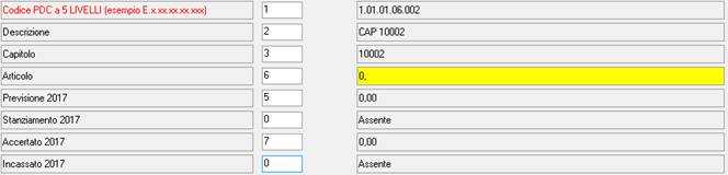 Se una colonna non viene valorizzata e lasciata a zero (ad esempio la colonna Accertato nella porzione Entrata) il dato relativo non viene importato e compare la segnalazione “Assente”. In caso di non congruenza del dato rispetto ciò che è atteso, la relativa specifica è evidenziata in giallo.