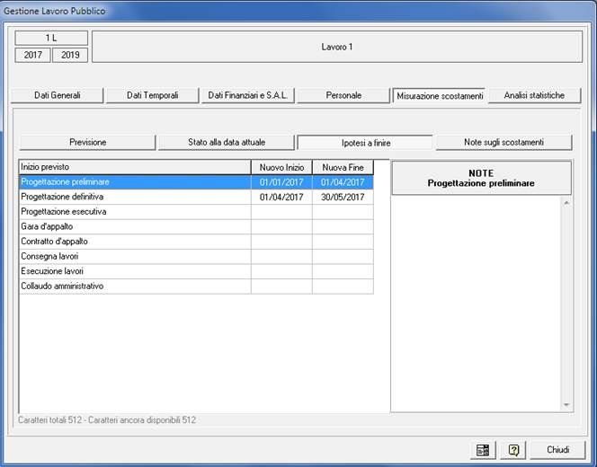 Sezione ‘Misurazione scostamenti’: è un riepilogo della situazione temporale e nelle “Ipotesi a finire” consente di inserire note a commento per ogni fase di attività.