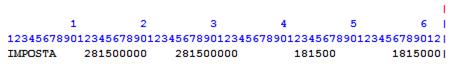 I numeri in blu servono a comprendere meglio come calcolare al meglio la colonna di INIZIO e la colonna di FINE delle voci sopra indicate (ad esempio il terzo importo 181500 ha la colonna di INIZIO nella posizione 42 e la colonna di FINE nella posizione 47 dell’esempio sopra riportato).
